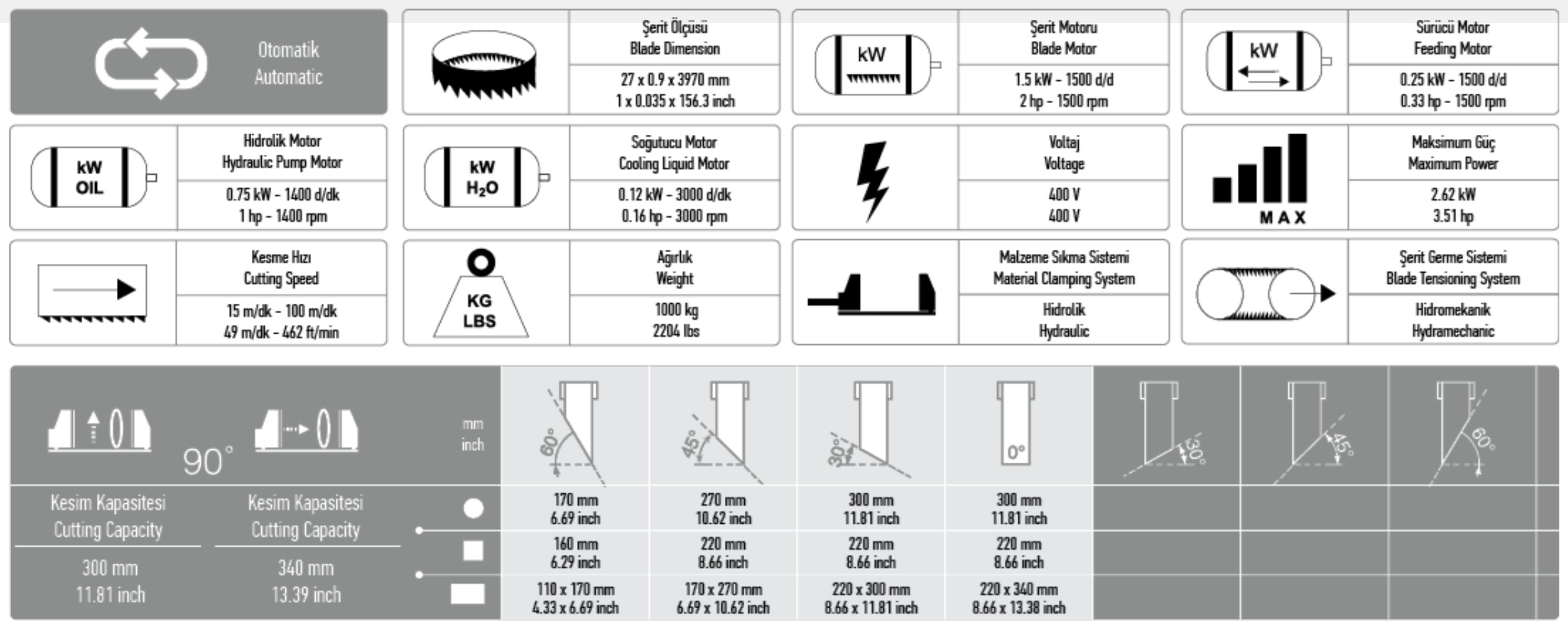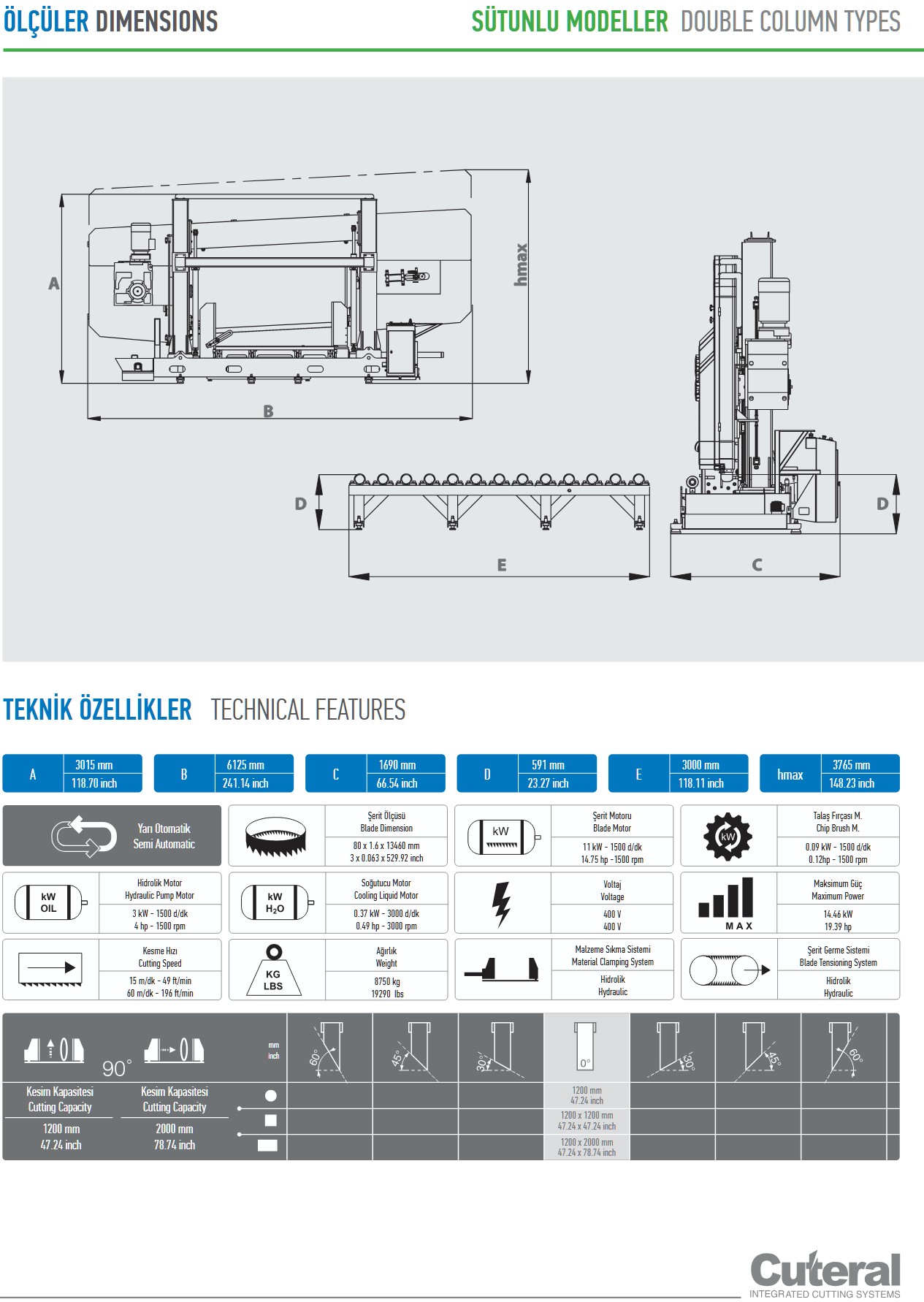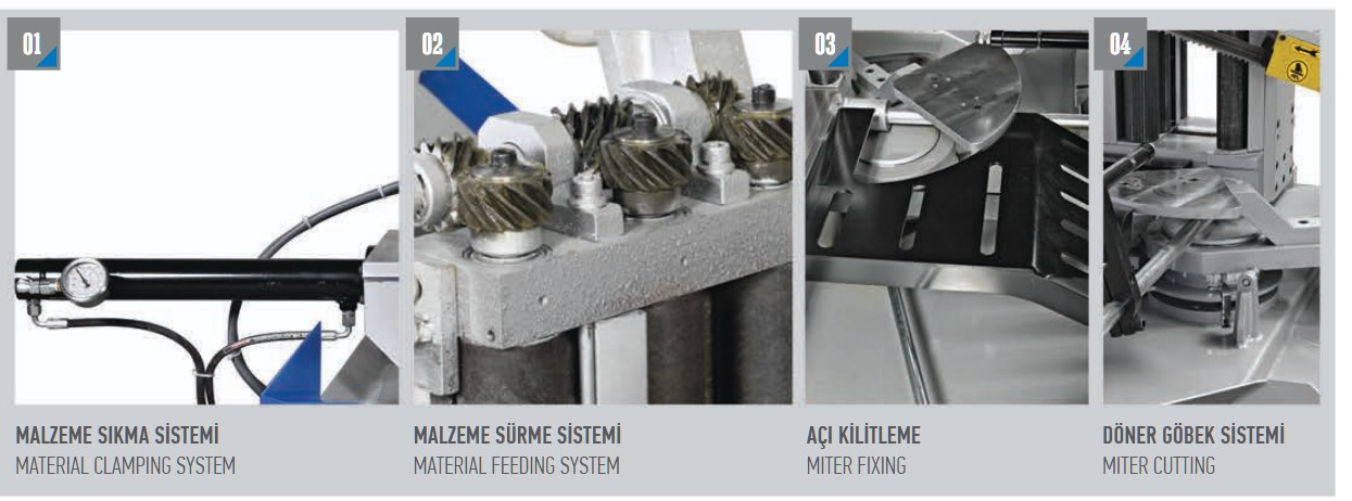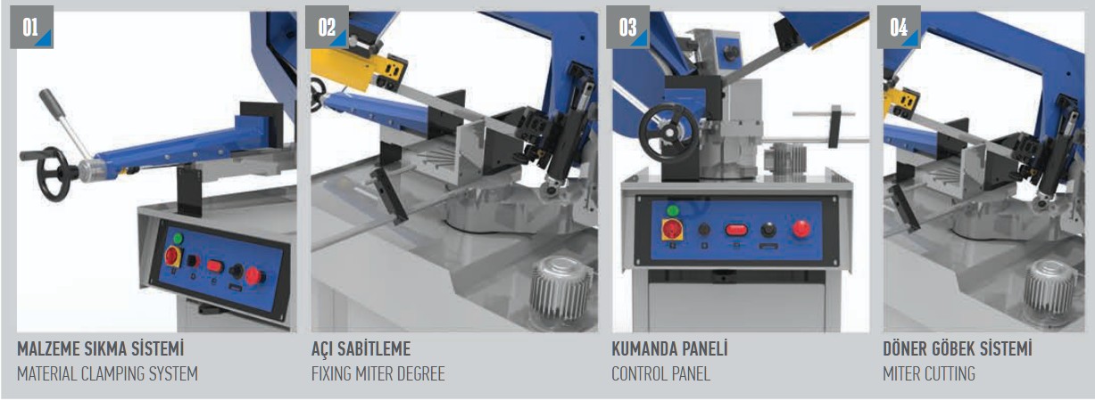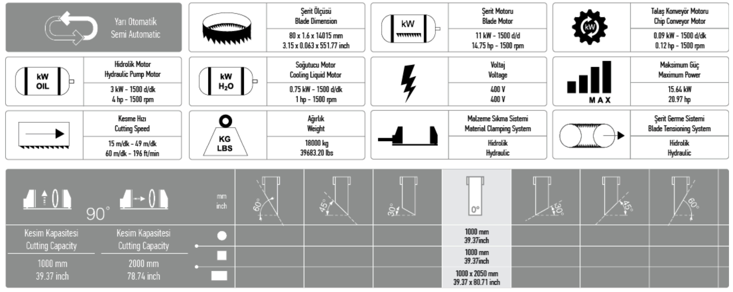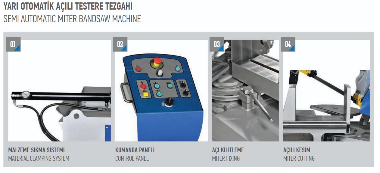 Yarı Otomatik Çift Yön Açılı Hidrolik Sütunlu Testere Tezgahı