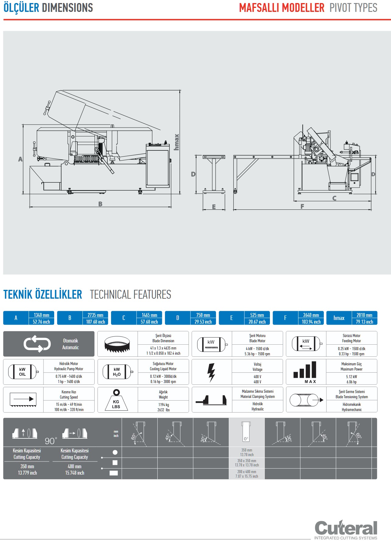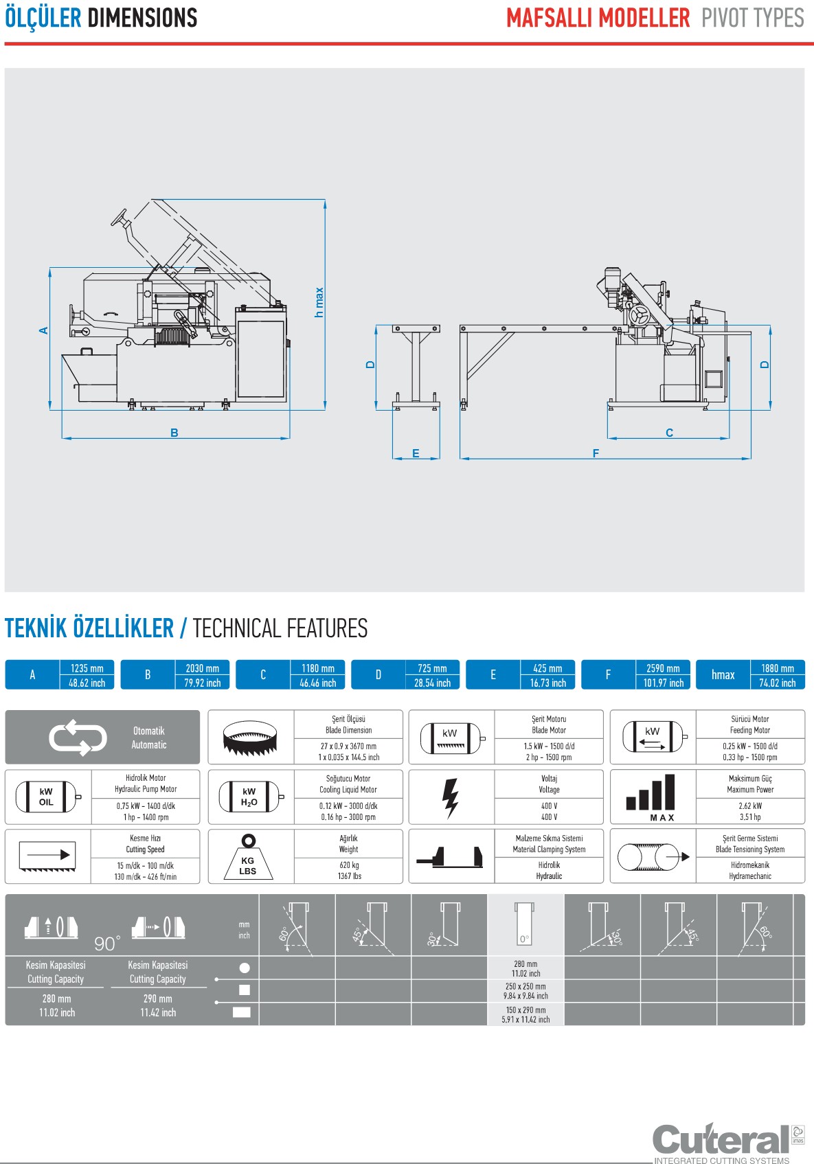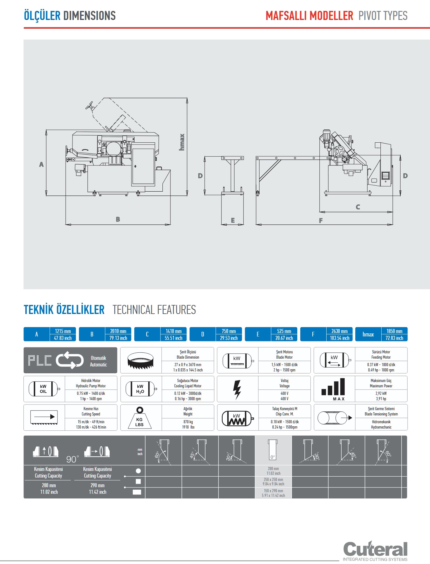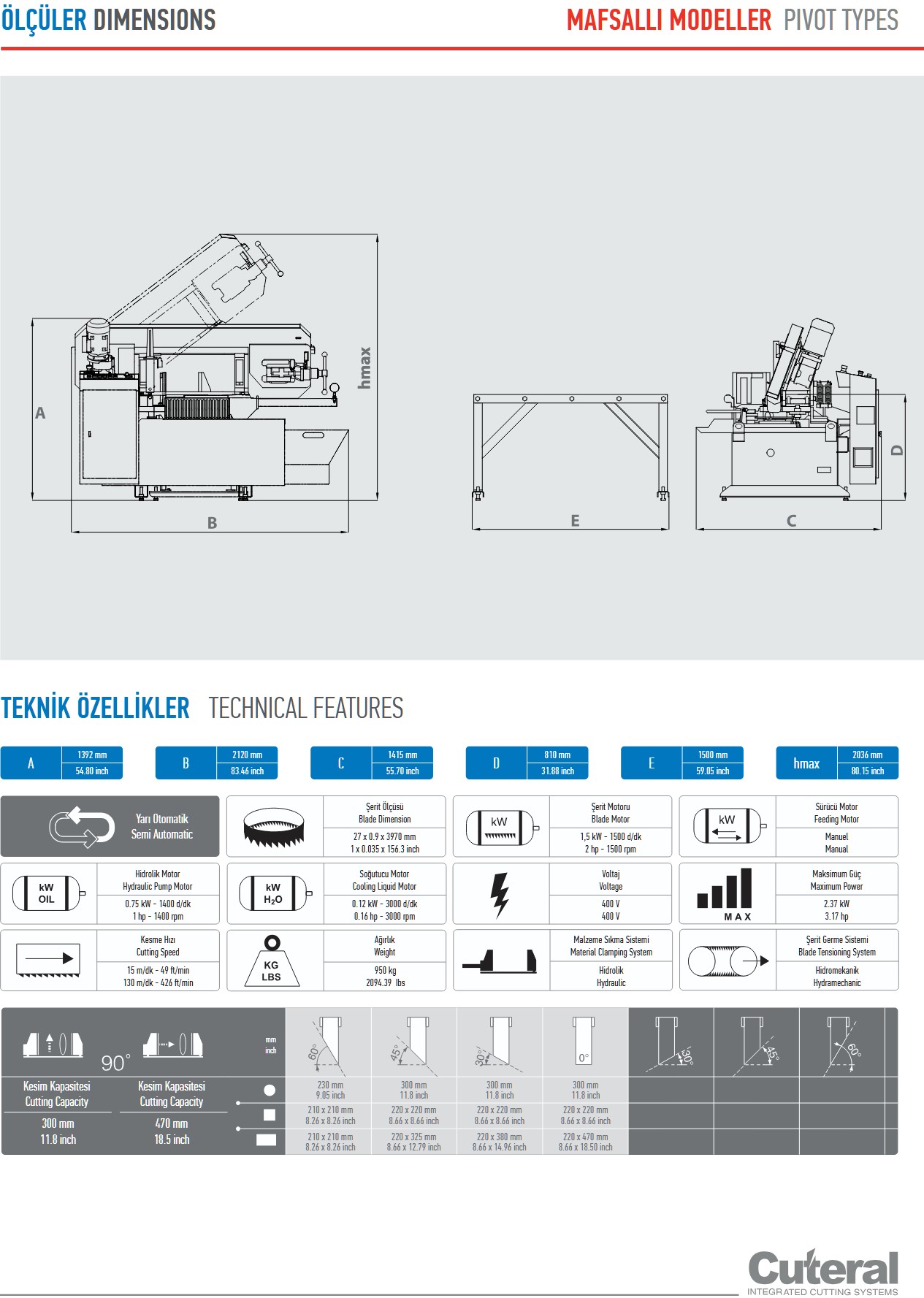 Yarı Otomatik Çift Yön Açılı Hidrolik Sütunlu Testere Tezgahı