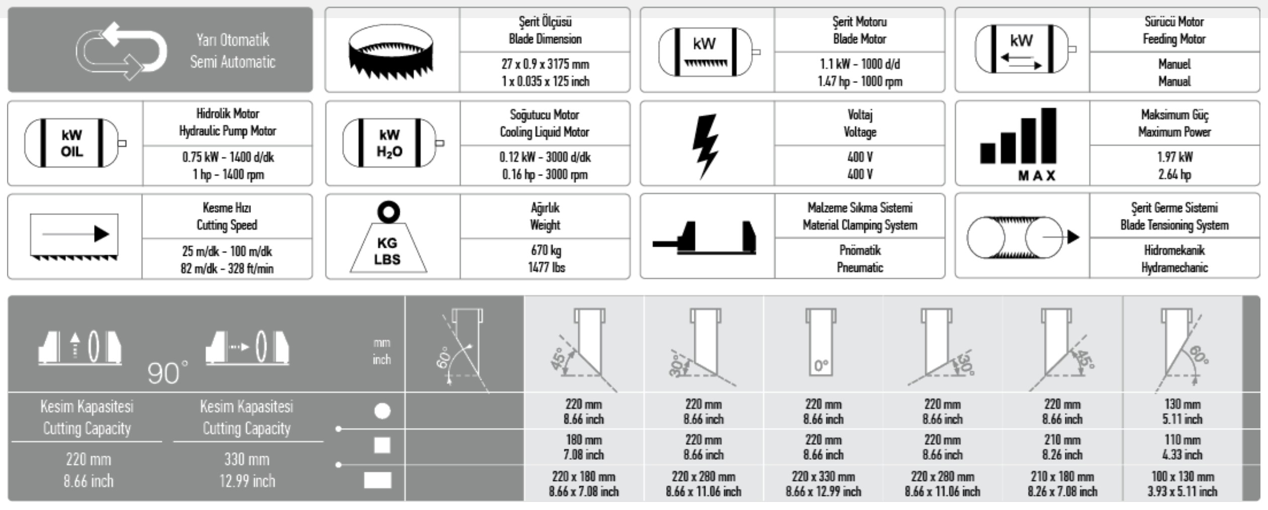Yarı Otomatik Çift Yön Açılı Testere Tezgahı