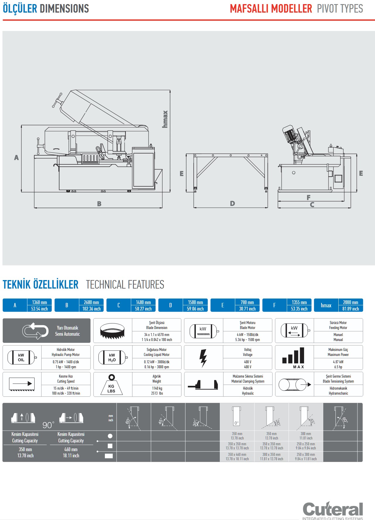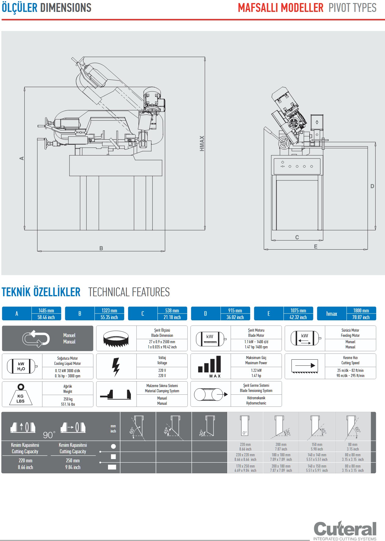 Yarı Otomatik Hidrolik Sütunlu Testere Tezgahı