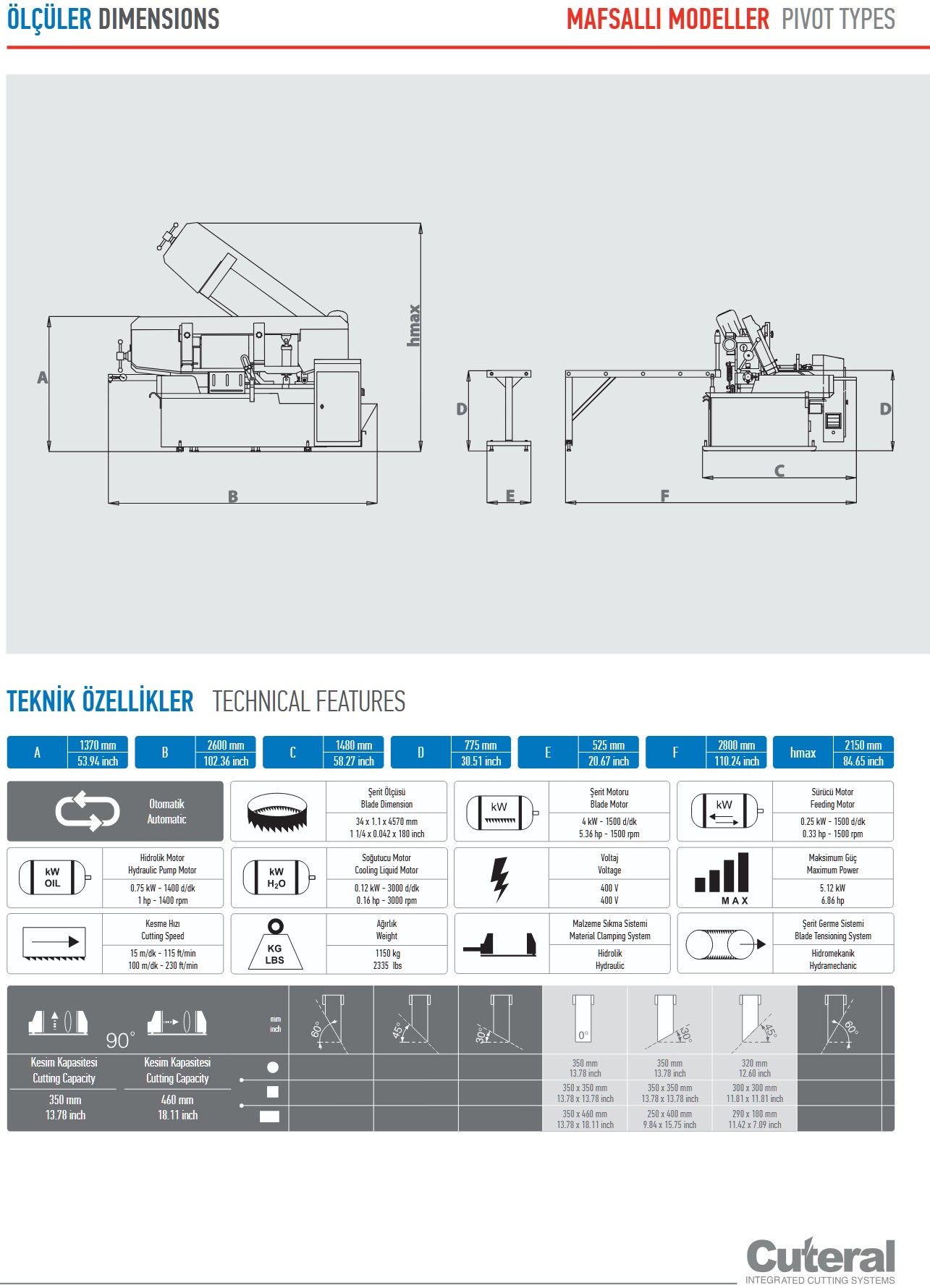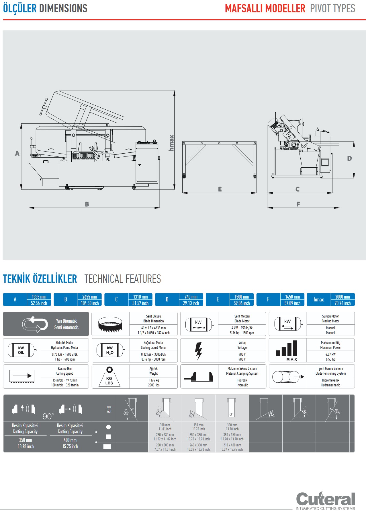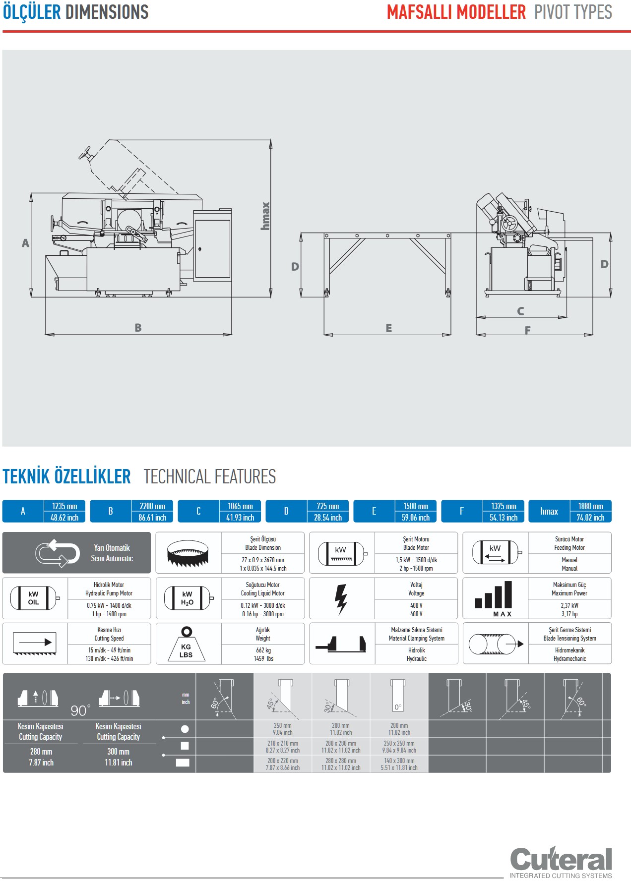 Yarı Otomatik Hidrolik Sütunlu Testere Tezgahı