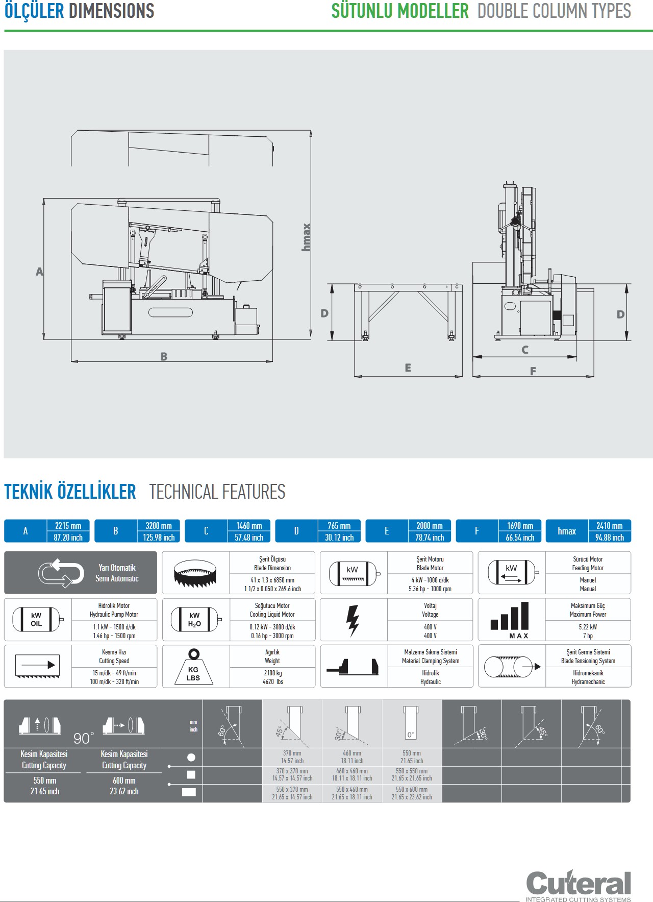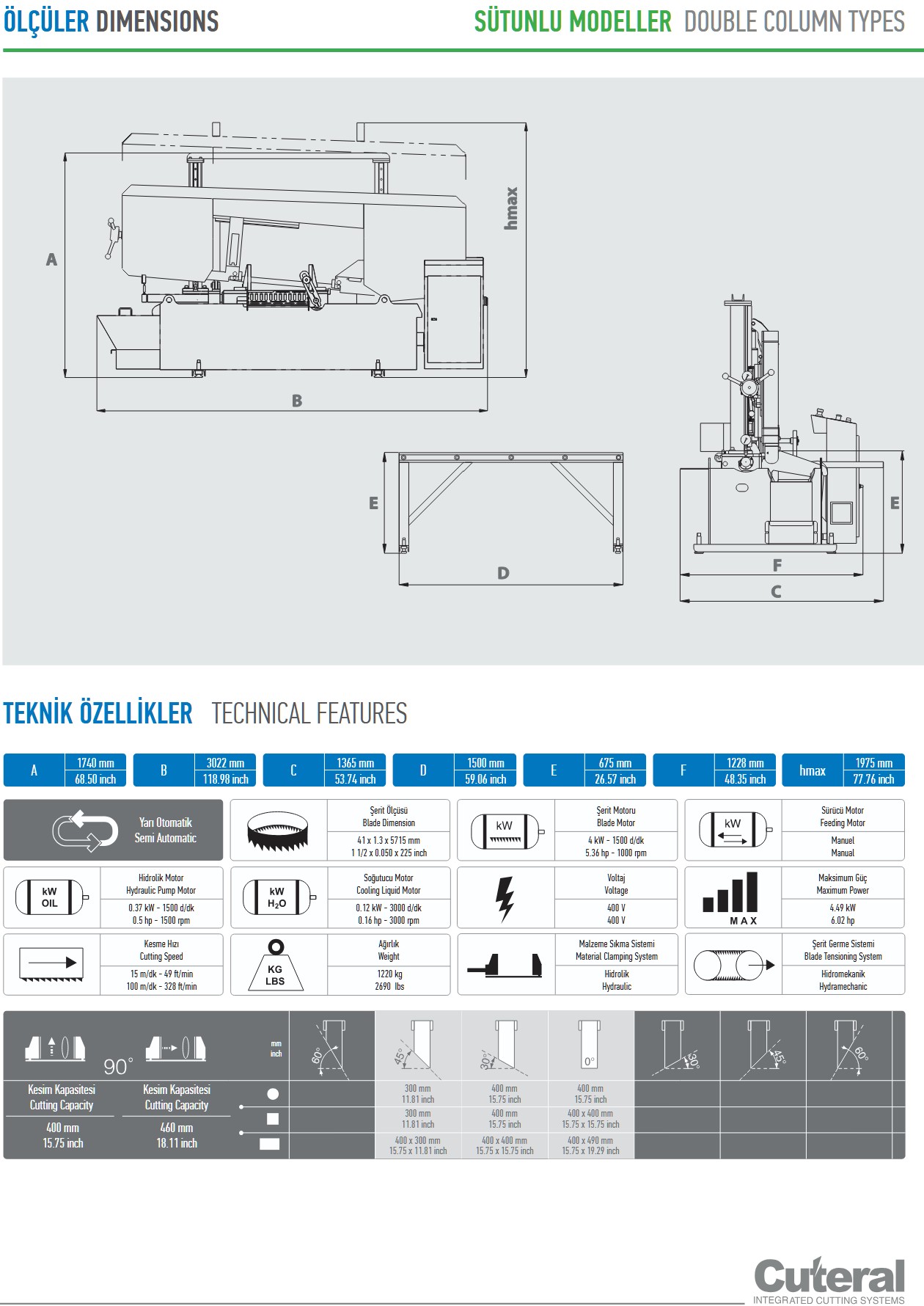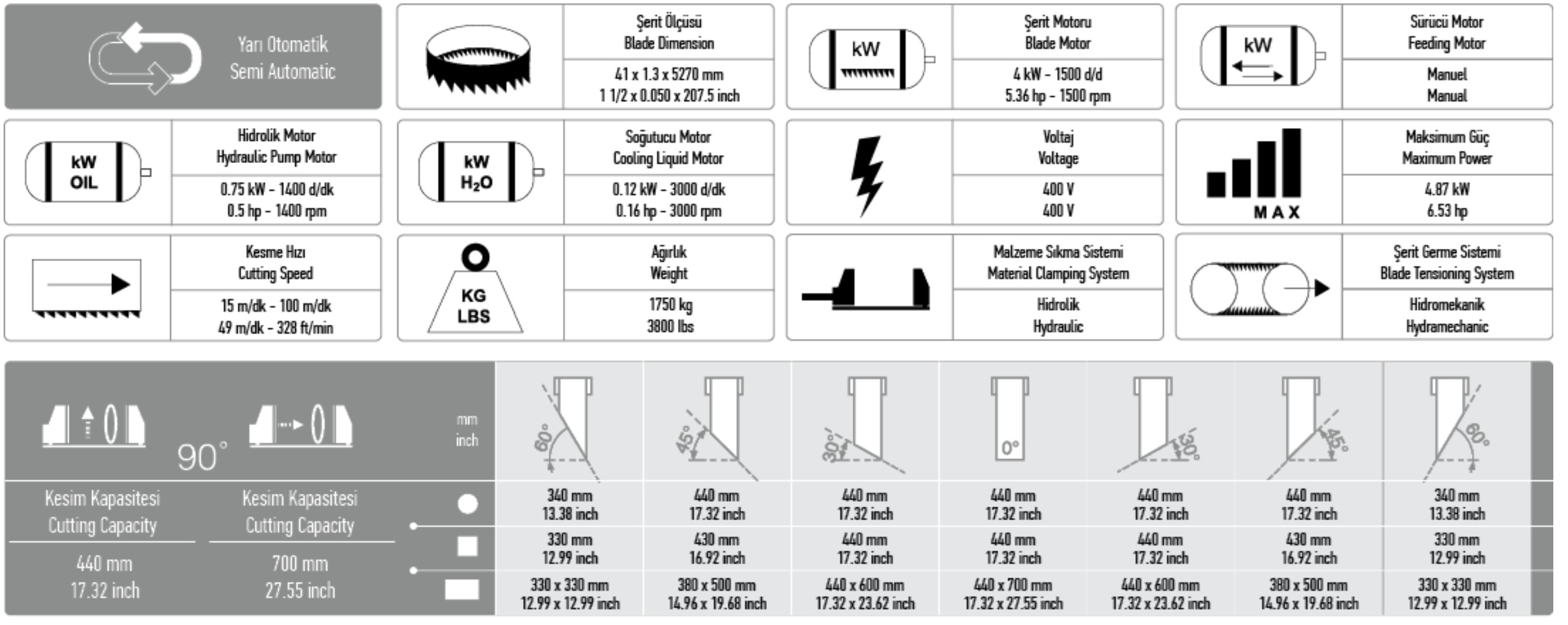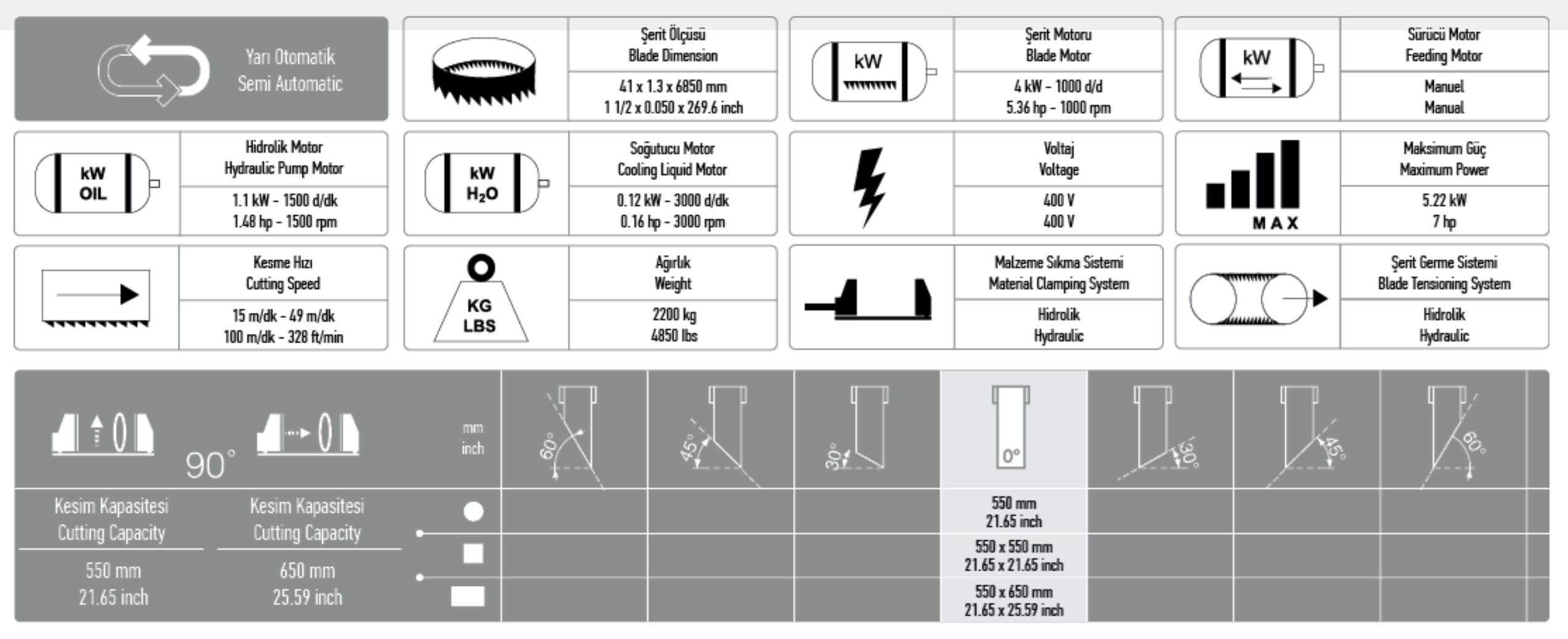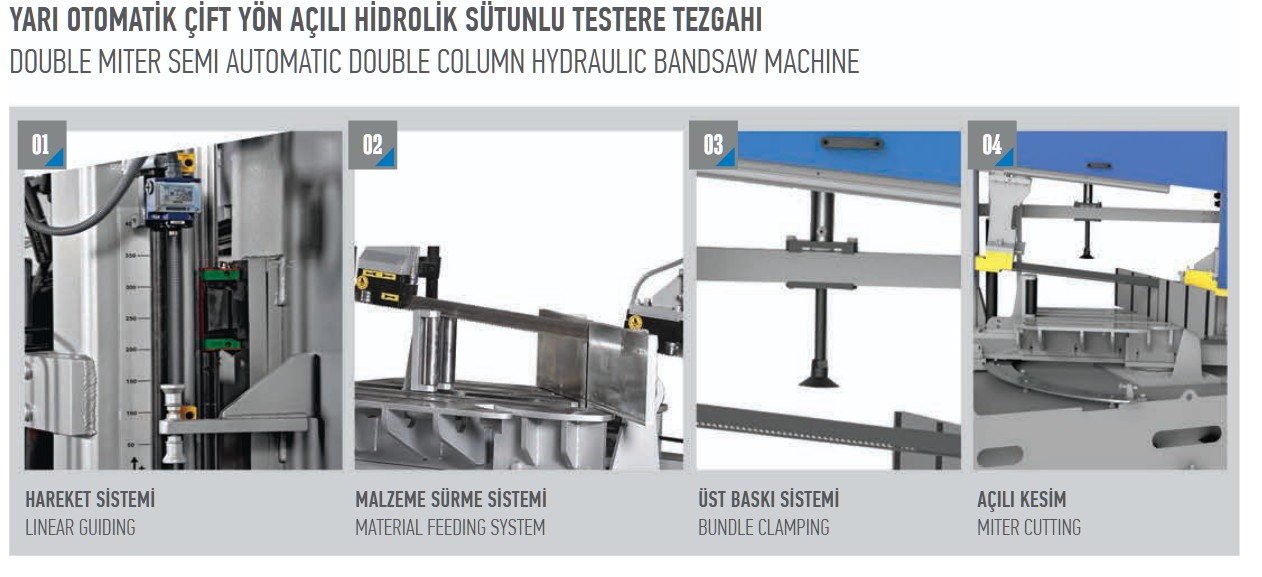 Yarı Otomatik Çift Yön Açılı Hidrolik Sütunlu Testere Tezgahı