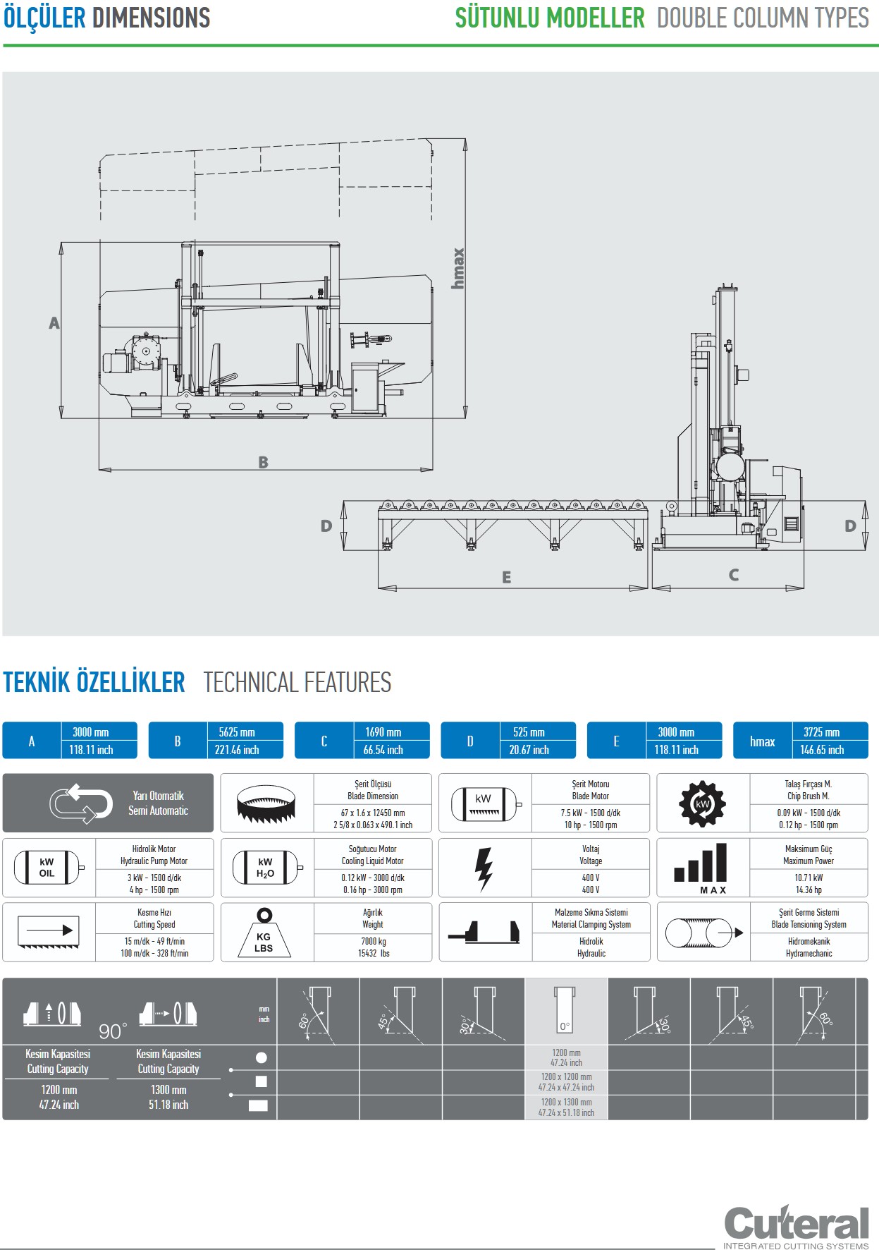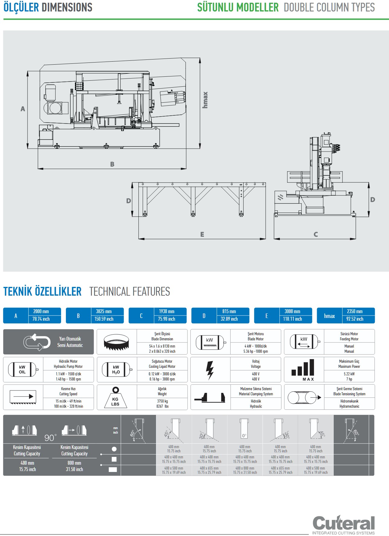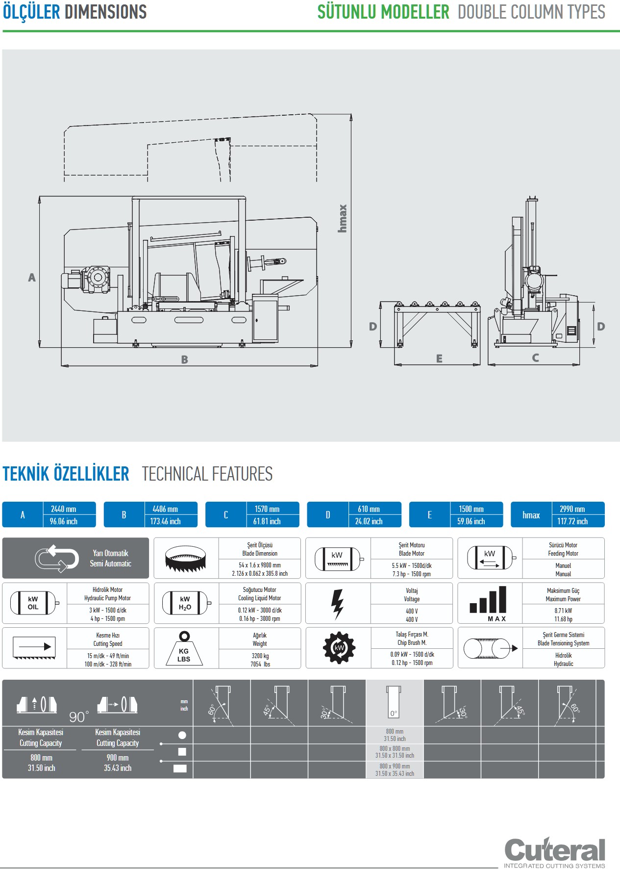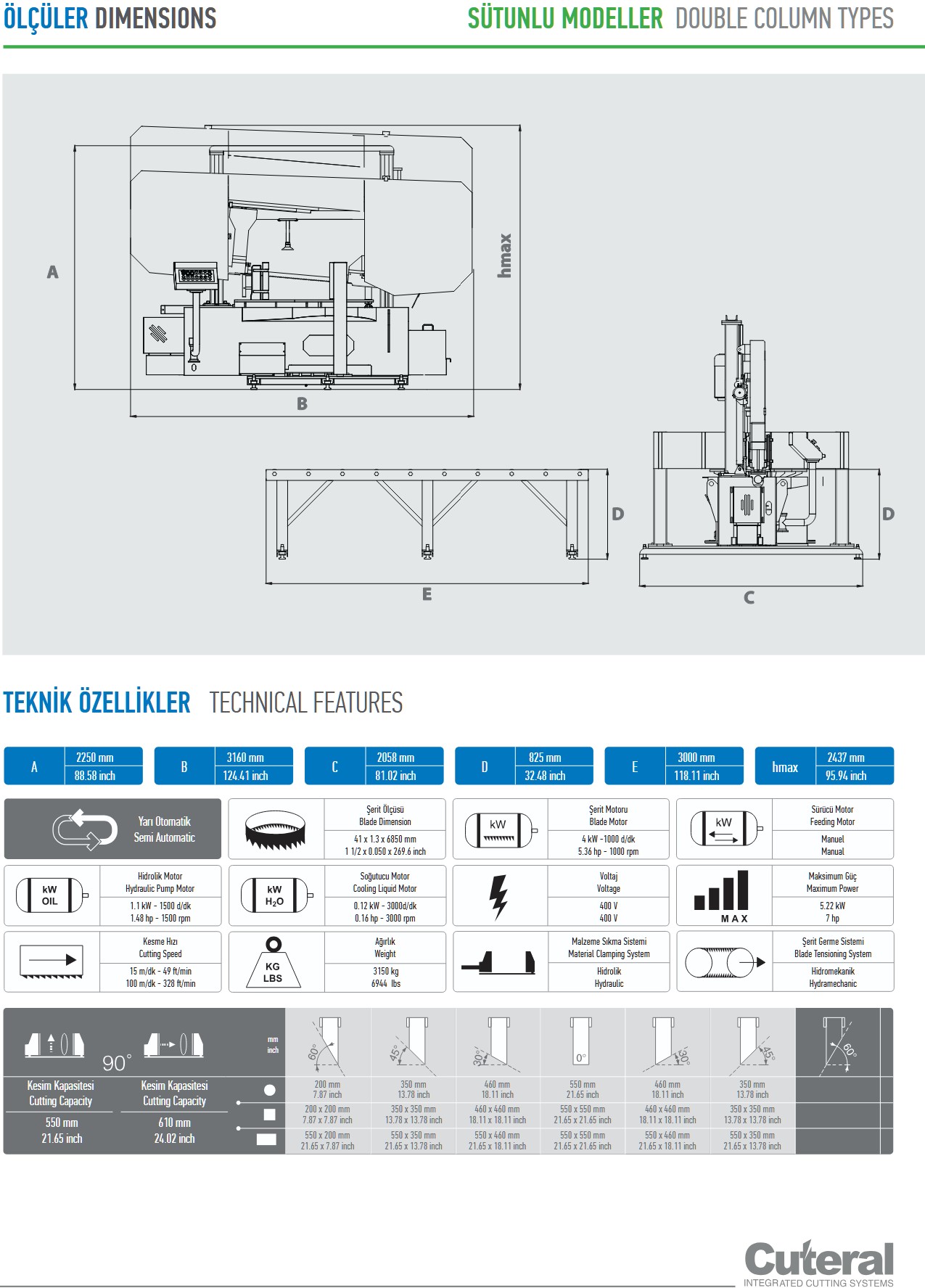 Yarı Otomatik Çift Yön Açılı Hidrolik Sütunlu Testere Tezgahı