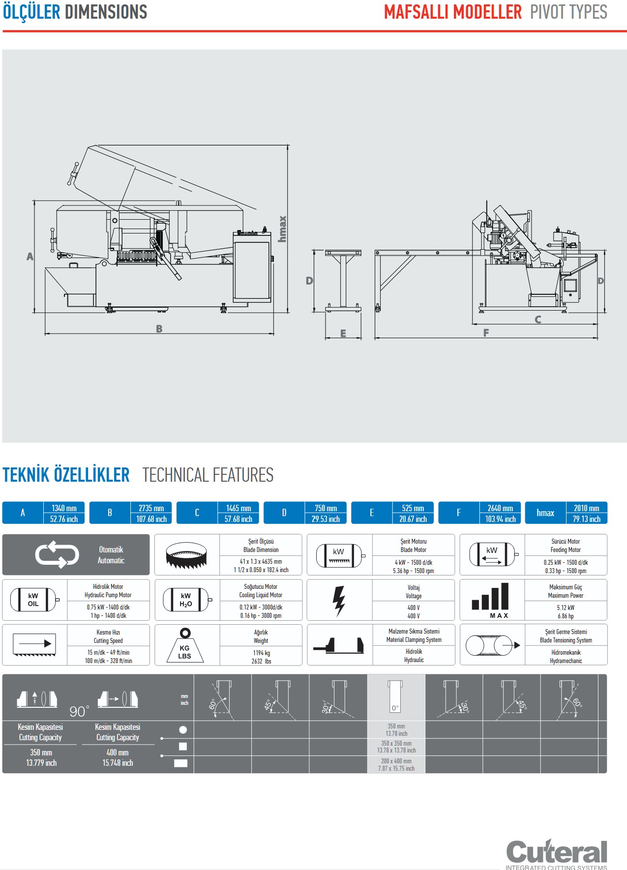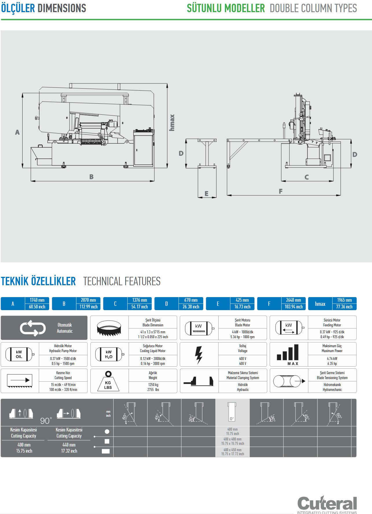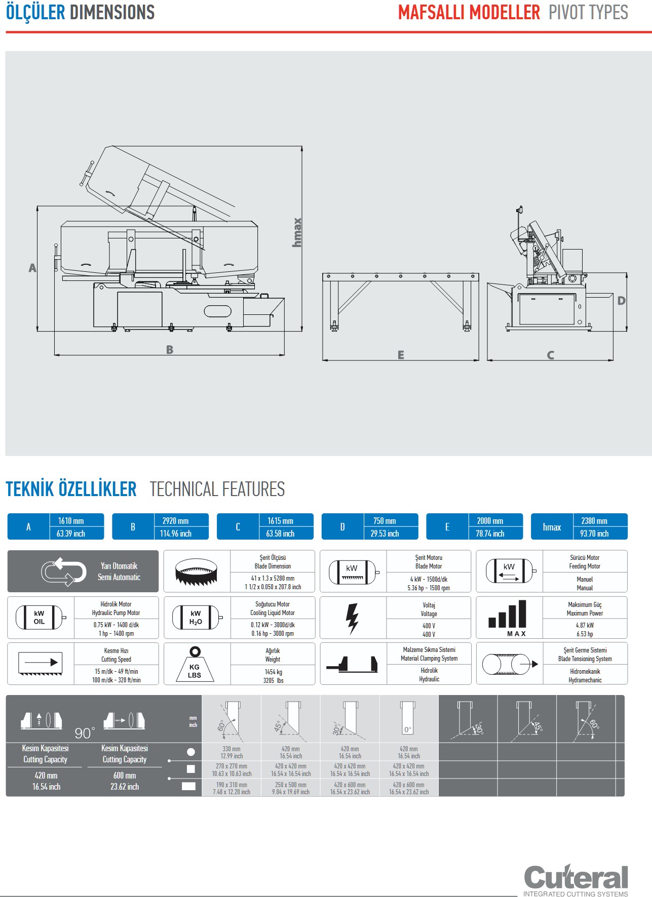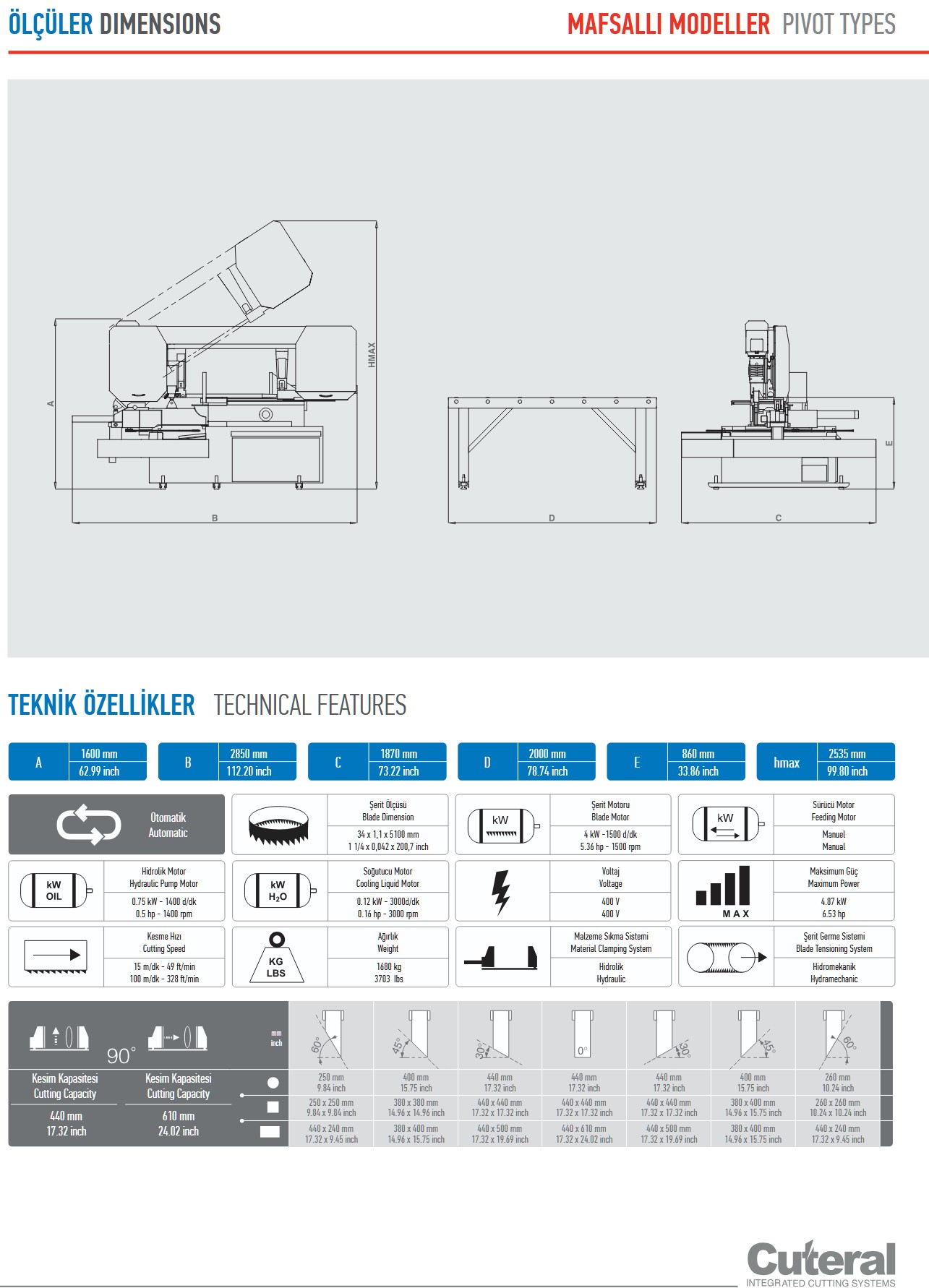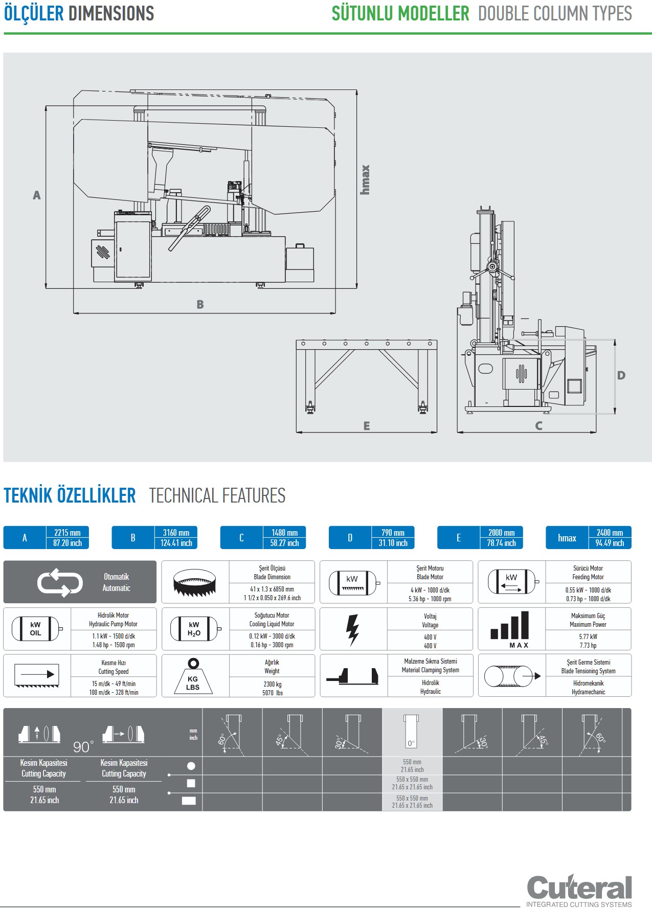 Yarı Otomatik Çift Yön Açılı Hidrolik Sütunlu Testere Tezgahı