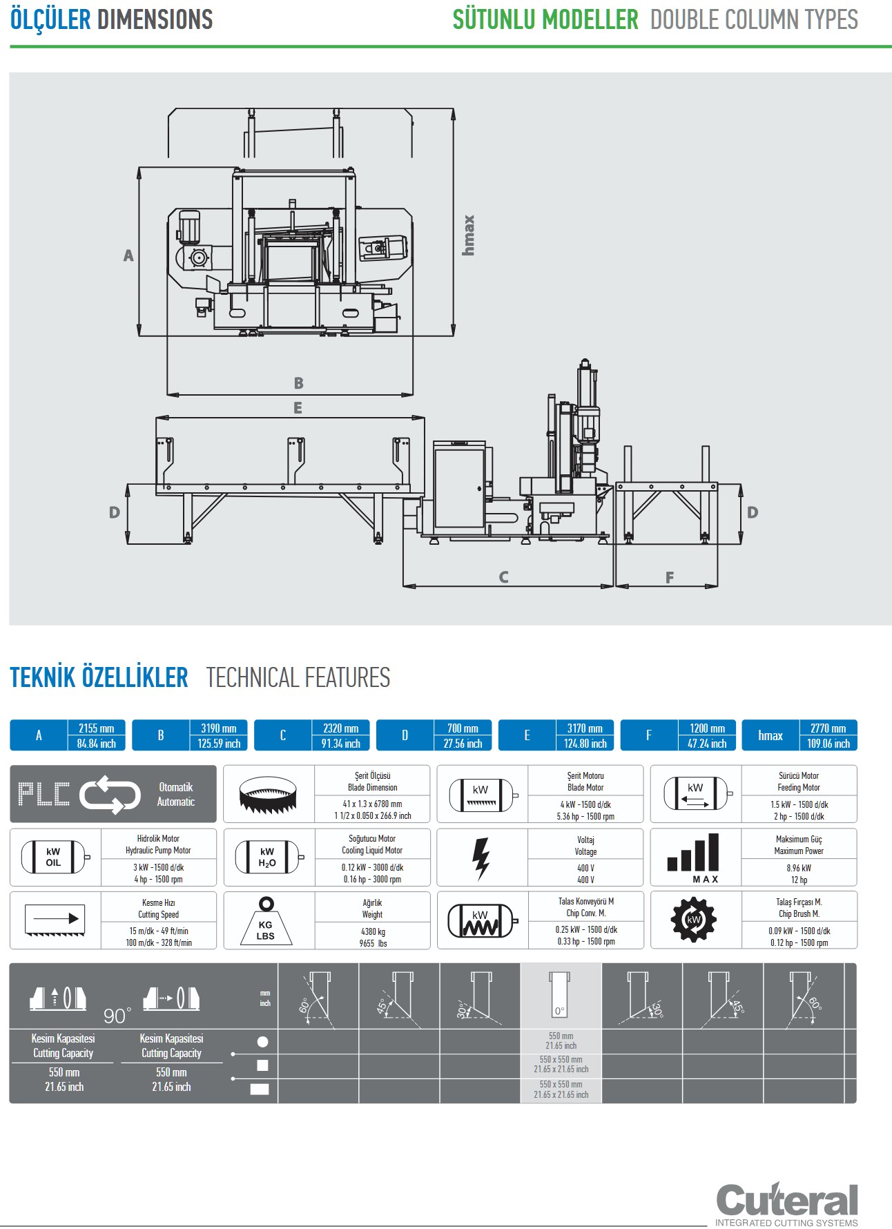 Tam Otomatik PLC Kontrollü Hidrolik Sütunlu Testere Tezgahı